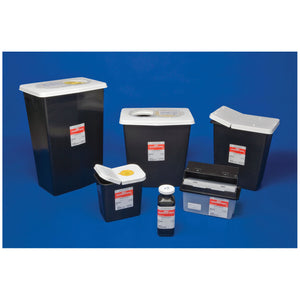 Designed to segregate hazardous pharmaceutical waste under the Resource Conservation and Recovery Act. Black with white lids, they are easily distinguish from other disposal containers. Each has a leak resistant gas