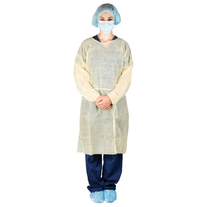 DUKAL S Isolation Gown, Poly Coated, Impervious, Yellow, 10/bg, 5 bg/cs (36 cs/plt)